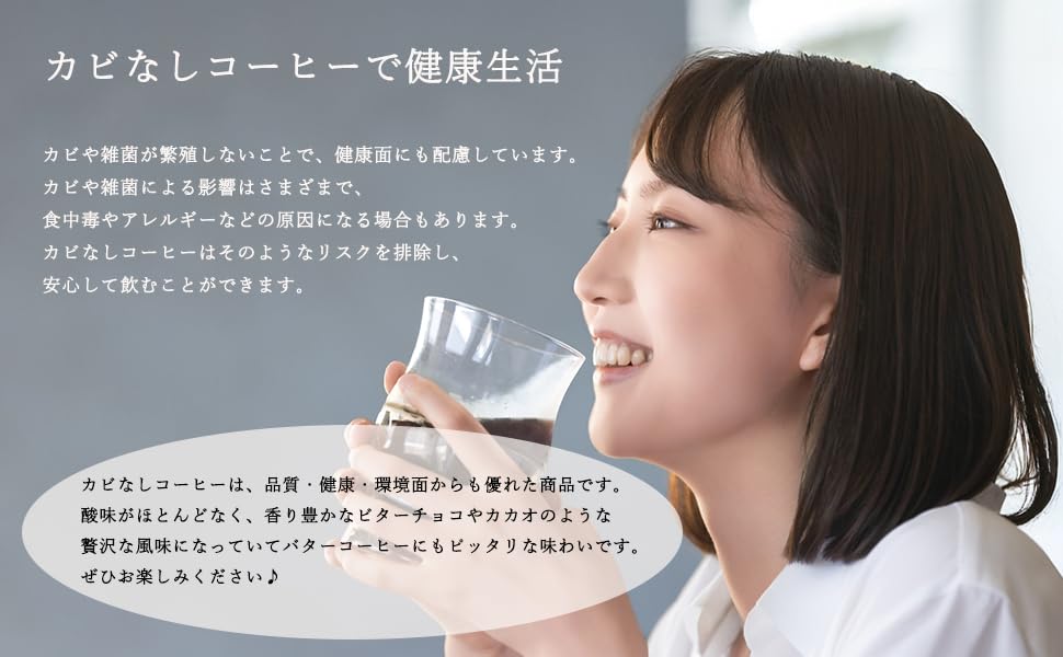 今まではコーヒーを口にするたび表情が歪んでしまうほど苦手でした。 コーヒーによるメリットも知っていたので飲めるようになりたいと色々な物を飲みましたが本当に無理でした。 このカビなしコーヒーはとても美味しく全くの別物です。 コーヒー苦手な方にこそ飲んでほしいです!