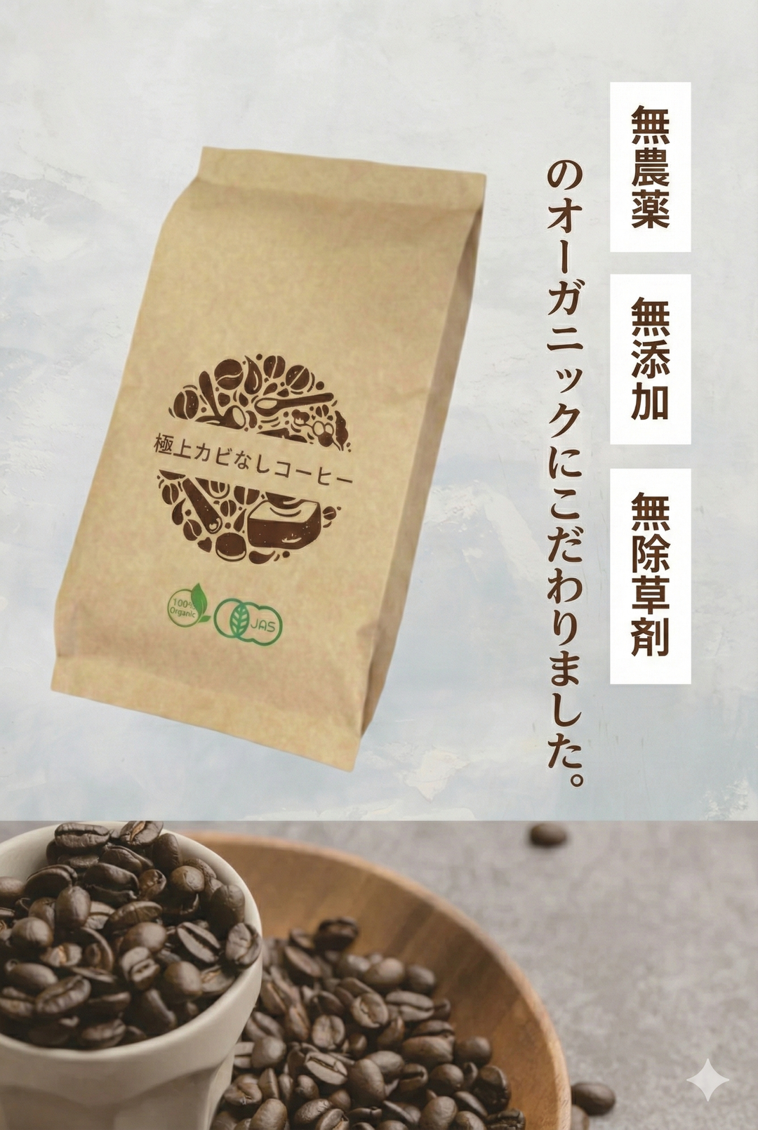 極上カビなしコーヒー豆 オーガニック 送料無料 無添加 無農薬 無除草剤